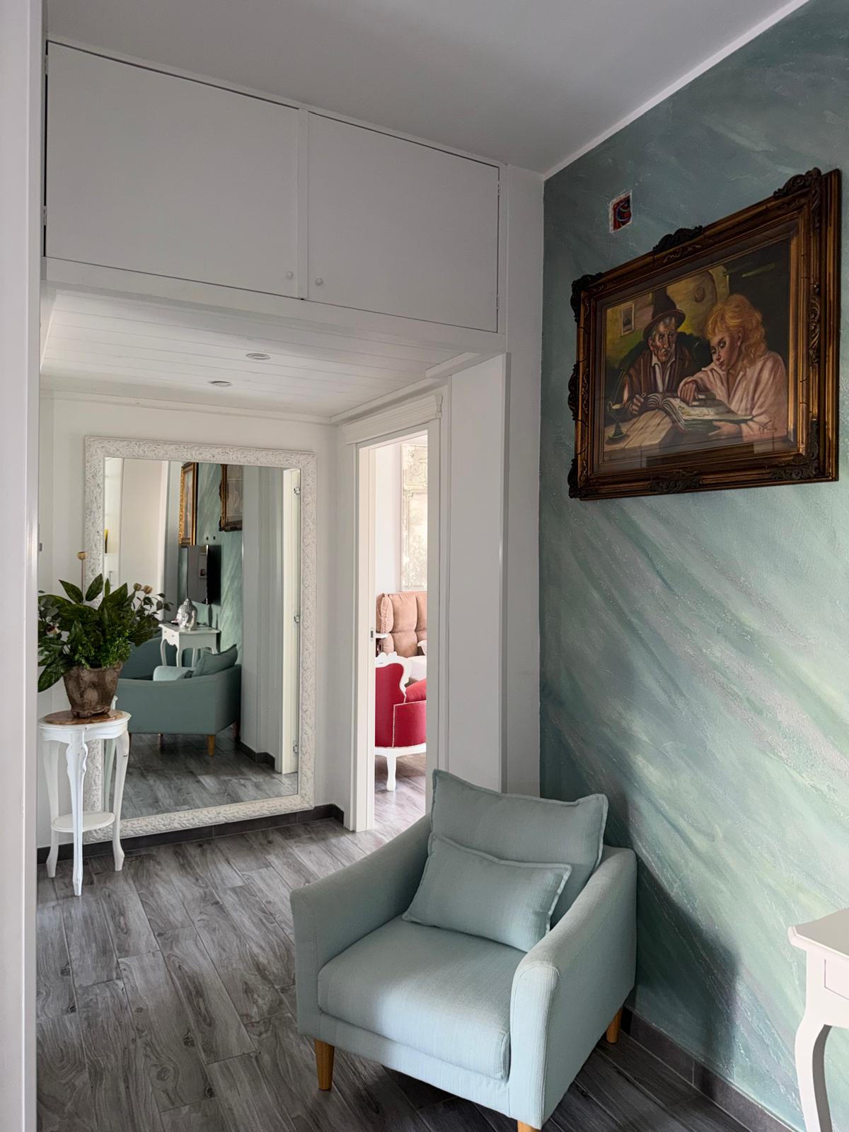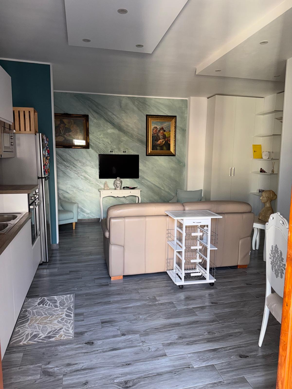 Appartamento in locazione – Trani, vista mare (Corso Don Luigi Sturzo) Proponiamo in affitto un appartamento unico nel suo genere, arredato con gusto e mobili su misura. Composizione interna: Ingresso scenografico con grande libreria realizzata su misura e cappottiera integrata Open space con cucina nuova, tavolo e sedie, salottino con divano 3 posti e TV Bagno di servizio e disimpegno con soppalco ad uso ripostiglio Secondo bagno molto ampio, recentemente ristrutturato, con angolo lavanderia schermato da tenda oscurante Camera da letto matrimoniale spaziosa, luminosa, con due balconi Situato a Trani, in Corso Don Luigi Sturzo, con splendida vista mare, in zona comoda e servita. Solo clienti referenziati.